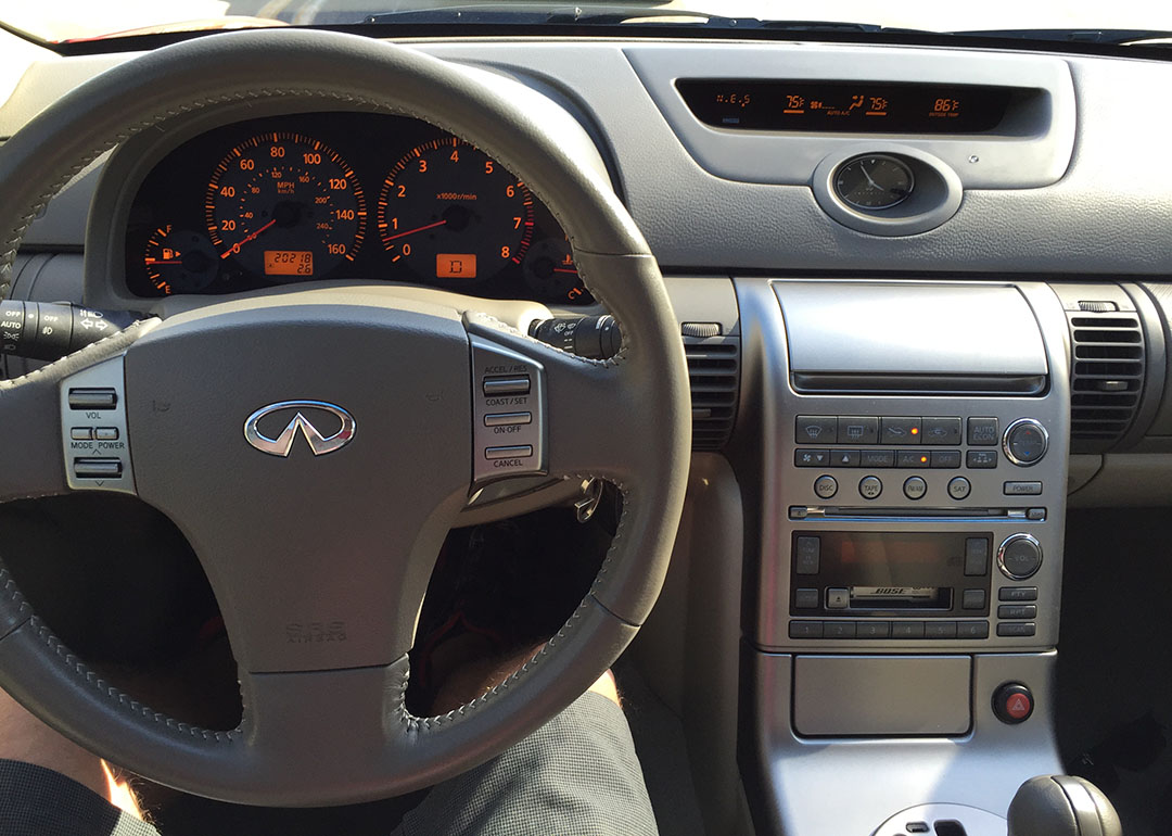 Over the last 12 years, he paid close attention to detail and maintenance, changing the oil and fluids himself. He has kept detailed notes on everything done to the car, and during our transaction he walked me through all the paperwork. Most used cars don’t even come with an original window sticker. This one not only came with that, but also with full books & records, a 4-page handwritten maintenance log, even a printed page from Infiniti.com from when John “built” his car online before taking delivery.