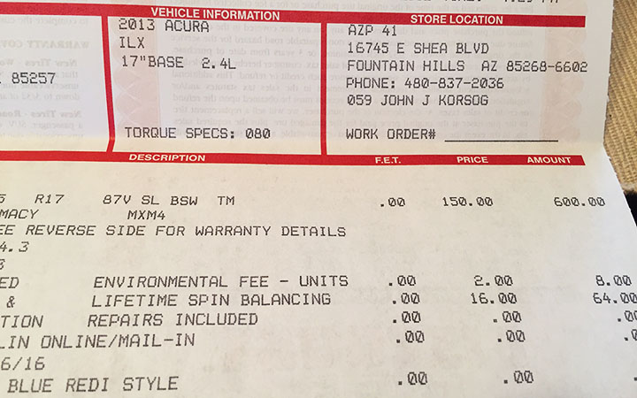 I got my tires ordered for the ILX.  I ended up going with Michelin Primacy 215-45-17s for $725.  They’ll be installed in early May just before the Alaska departure.  Michelin has a $70 rebate going on right now so I figured the timing was right to go ahead and get them ordered.