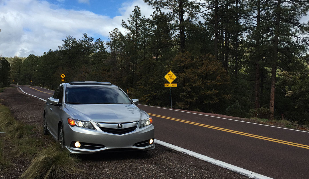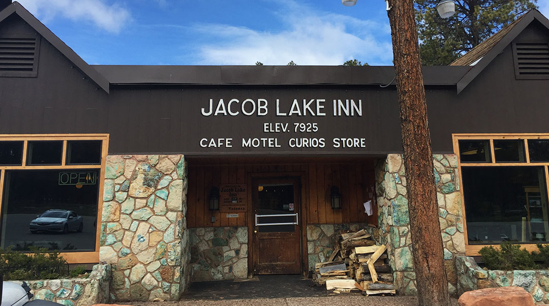 For the return trip to Phoenix, I wanted to introduce Rob to some other parts of Utah & Arizona that he hadn’t yet seen, so we opted to circle back to Phoenix via Flagstaff as opposed to back-tracking to Las Vegas where we’d come from. About 90 minutes into our drive we’d reached the 7,900-foot-elevation Jacob Lake Inn, a historic lodge just north of the North Rim of the Grand Canyon. There’s a small gas station, motel, restaurant, and gift shop on the site. I couldn’t resist the grilled cheese sandwich so we stayed for a bite to eat before continuing on our way. Spy the ILX in the window reflection here!
