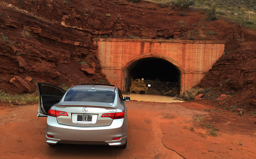 Old tunnel into St. George that has been bypassed by modern roads, and now serves as a storage area.