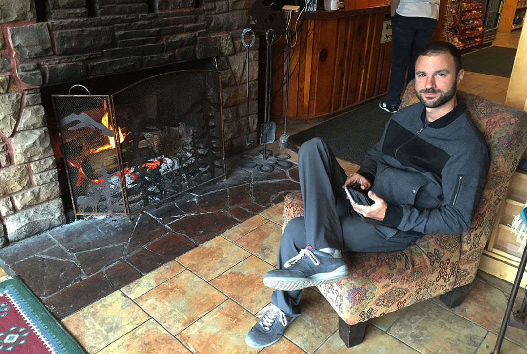 Rob getting cozy at the Jacob Lake Inn