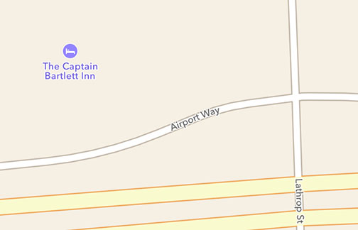One interesting discovery I’ve made is how much time can change a community.  When my dad and I visited here in 2006, we stayed at a rugged yet very cozy place here on Airport Road called the Captain Bartlett Inn.  Formerly known as the King 8 Motel and dating back to who-knows-when, it was renamed Bartlett in 1977.  When we stayed there, it was already a bit run-down.  Here’s a photo of our arrival in the Legend coupe.