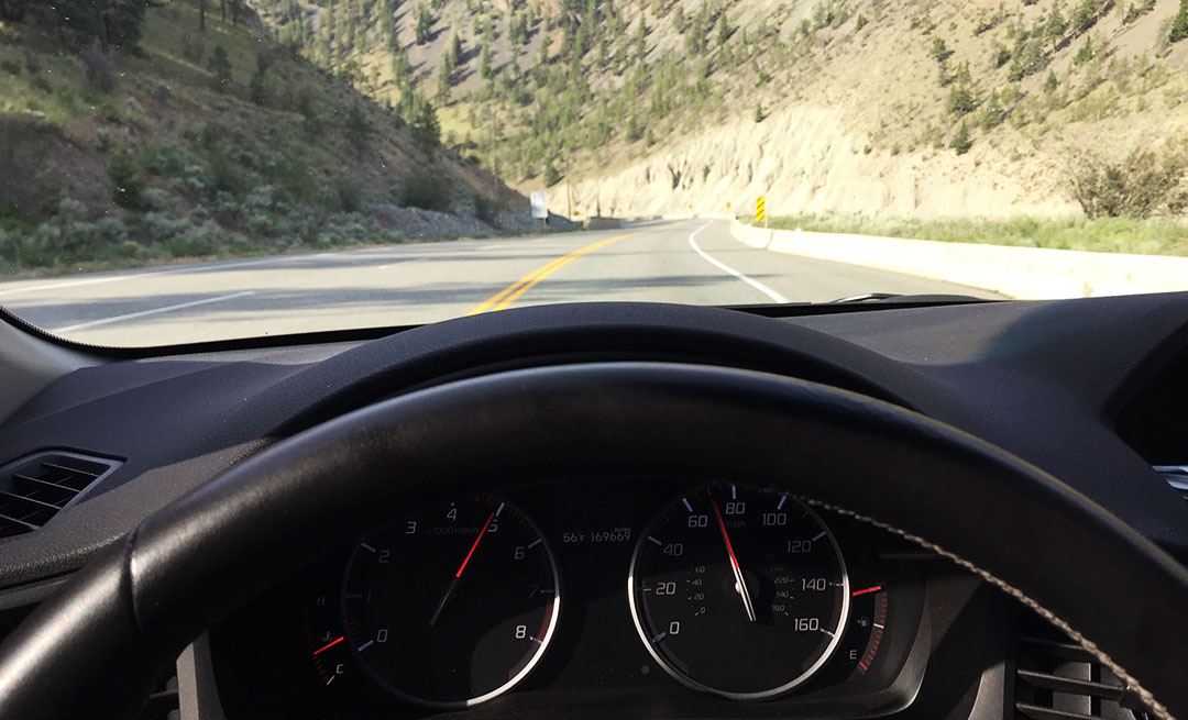 Downshifting to let the car’s engine brake for me on the steep grades of the Trans-Canada Highway 1