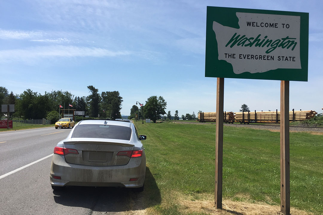 The border checkpoint at Abbotsford moved fairly slowly but we got through in about 25 minutes.  The U.S. Customs agent recommended that I stop at a gas station and clean off my license plate.  Ha!
