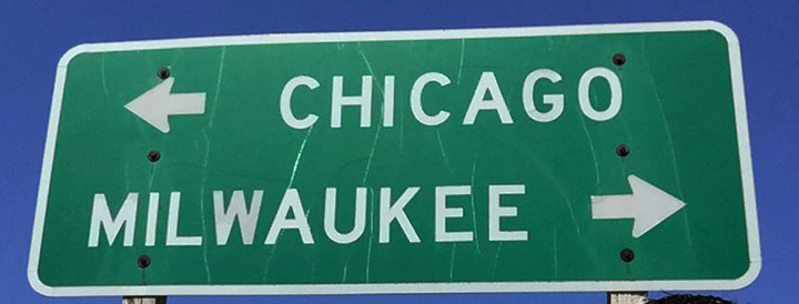On Thursday I woke up to sunny weather in Glendale and spent the morning getting my bearings with the neighborhood. I’d arranged to meet my friend Brad near the WI/IL state line but we hadn’t yet defined a meeting point. My drive down I-43 and I-94 was a breeze – within about an hour I’d already pulled over for a customary photo at the Illinois state line.
