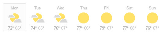 You really can’t get a much better 7-day weather forecast than this. Highs in the 70s. Lows in the 60s.