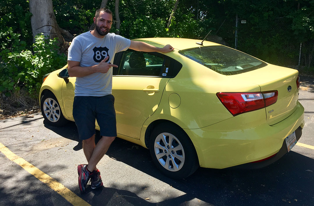 My yellow 2016 Kia Rio from Dollar Rental was a sight for sore eyes.