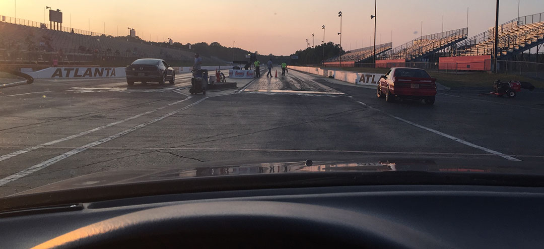 This evening we rolled out en masse toward Atlanta Dragway in Commerce, Georgia for the “Year One Fast Friday” at the 1/4 mile dragstrip.  My $20 participant entry fee was very well spent.  And the few hours of waiting to get my car’s nose to the start line were also well worth the 16.7 seconds it took me to get to the finish line.  Maybe I should have gone a little more slowly to really enjoy the scenery along the way?  Our crew had a great time and I counted over 15 Legends that raced.  This is higher than any previous NALM event to my knowledge.