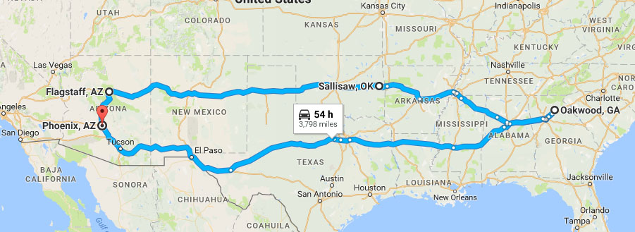 I made it home, sweet home! While I’m unpacking the car, sorting through junk mail, and doing a load of laundry, I threw together some quick statistics on my 8-day trip from Phoenix to Atlanta and back.