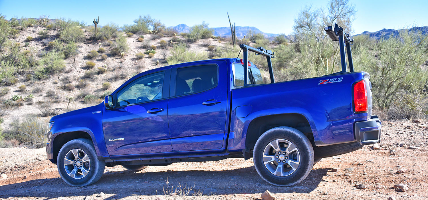 For the last 5 years, I’ve volunteered to help with a Phoenix area “COTY” (Car of the Year) program that caters to folks who are athletic in nature. It strives to weed out and select the new vehicles each year that stand out as superior for those who demand more from their vehicles: Those who participate in outdoor sports, primarily. So it makes sense why GM entered its new Colorado pickup truck, and also why they chose to outfit it with all sort of accessories like an optional kayak rack in the bed.