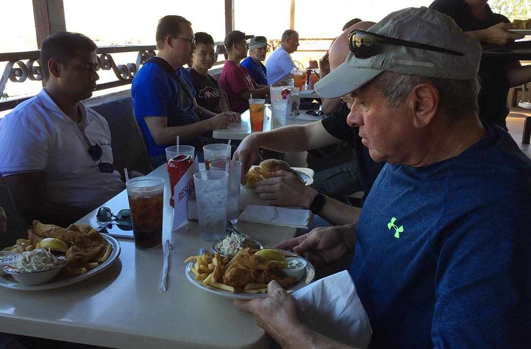 We branched south at Bush Highway and went to the Lakeshore Restaurant for lunch.  Luckily, Lakeshore was able to accommodate our party of 25+ on the outside patio overlooking Saguaro Lake and the weather was perfect for dining al fresco.  The BBQ chicken sandwich was a solid 10 out of 10.  Jhae made some announcements and notified us that current NSXCA (NSX Club of America) members would receive $10 off their meals.  Sweet!  There were also some giveaways like Hot Wheels NSX scale models and posters.