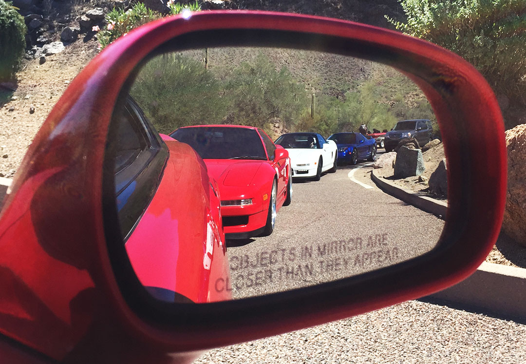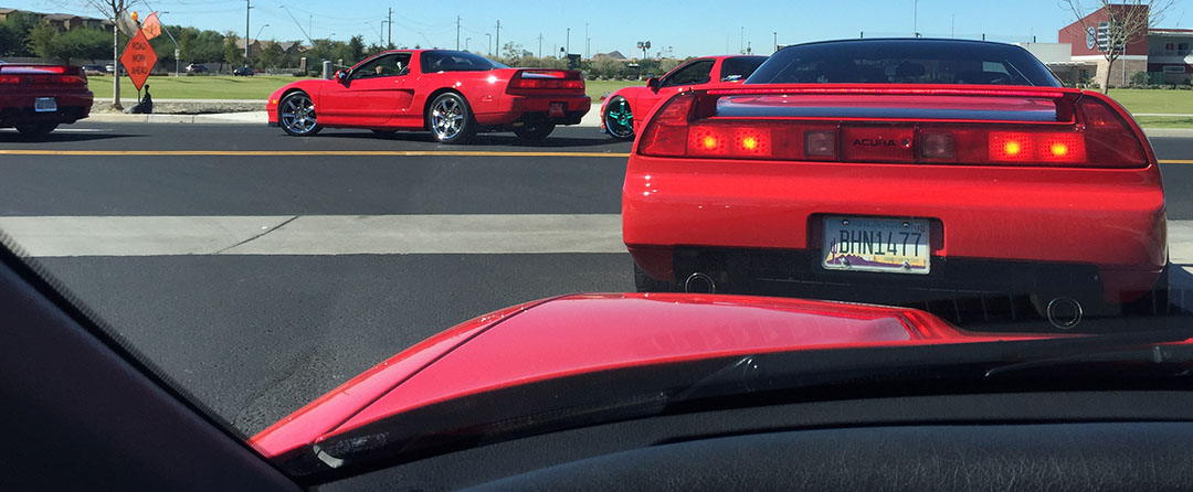Our friend Jhae is the man when it comes to managing the NSX ownership contingent in Arizona.  On occasions I’ve had people send me photos of NSXs they’ve seen out and about.  If it’s a car I can’t identify, I send it to Jhae.  Seconds later, he’ll give me the full download:  Year, modifications, and ownership history.  That’s why we lean on him to be our local event coordinator.  He pulled through for us in a big way yesterday when we had 15 cars show up for a meet, cruise, lunch, and photoshoot.  It was like a mini-NSXPO event squeezed into a 4-hour timeframe.  And everyone had a great time!
