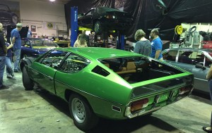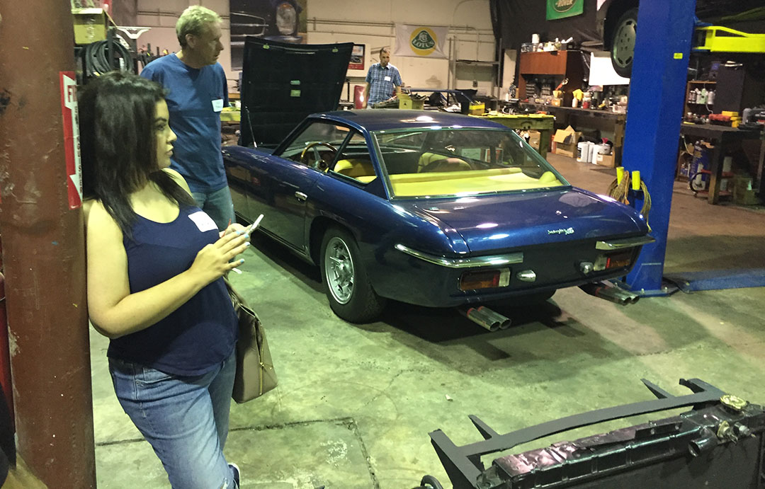 Getting a look at the shop area where restorations take place, with a very rare Lamborghini Islero in the background – produced only between 1968-69 (and only 125 total units).  That blue is a factory color!
