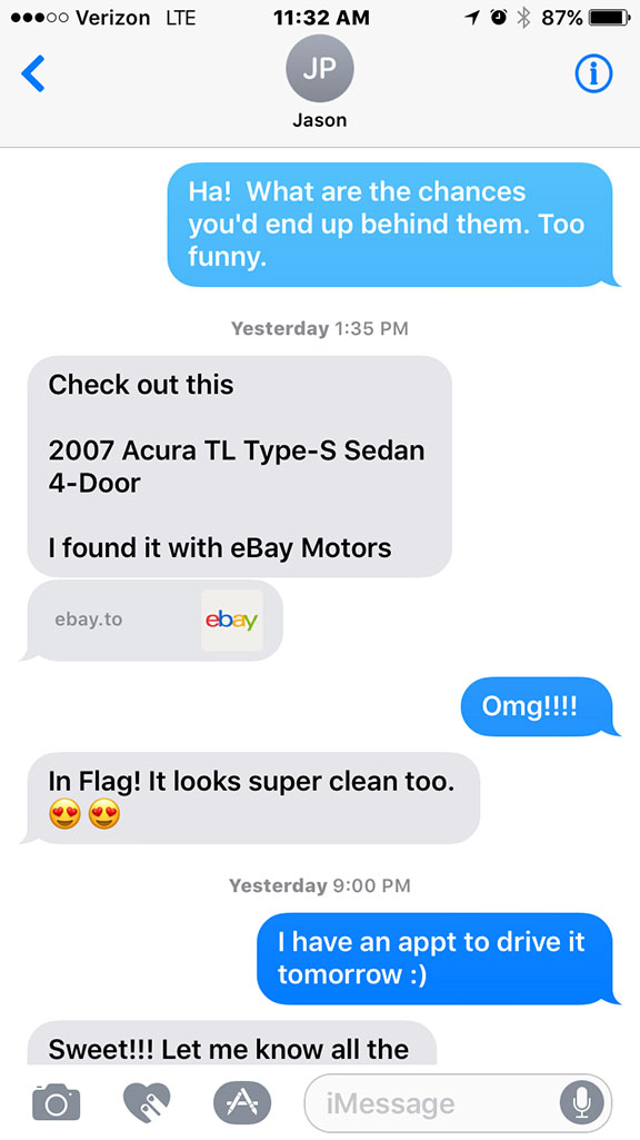 I sent a message to the seller right away asking if he’d have time to show me the car the following morning, on Sunday.  And Sunday, I road-tripped the Legend coupe to Flag so I could give the TL a look-see in person.  The car, and its seller Dave, were as nice as could be.