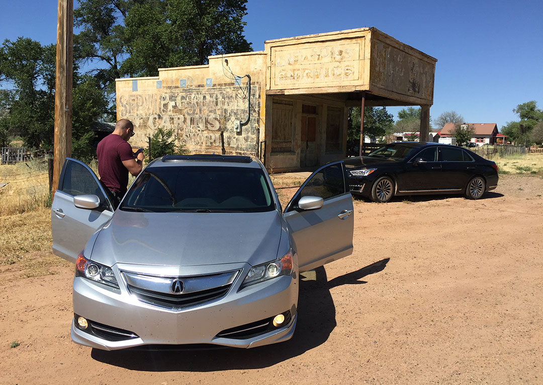 Our northbound holiday weekend trip started on Friday afternoon, when four of us made our way toward Las Vegas in two vehicles: My 2013 ILX and James’ press car flavor of the week, a fancy-pants 2017 Genesis G90. Its double-paned glass, football fields’ worth of leg room, and 5,000-pound heft allowed it to glide its passengers through the desert in ultimate serene comfort. Meanwhile my little 2.4-liter four-banger was plenty audible at 3,500 RPM cruising speed, but at least I was able to drown it out with some proper road trip tunes.