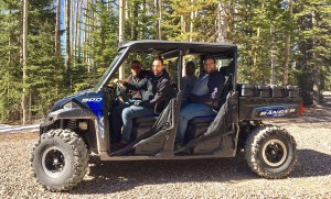 We took my brother’s 6-seat Polaris Raptor ATV for a spin around some of the dirt trails in the surrounding area. In high gear, on a downhill grade, we could only get it up to about 30 miles per hour with our 4 adult bodies onboard. So I think the 120-mph speedometer is a little optimistic! The go-anywhere capability was nice, though, and we plowed through a couple of snowbanks with ease.