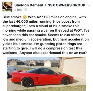 On a related note, a friend sent me this a few days ago: Someone posted on the NSX Owners Group on Facebook that his car had over 427,000 miles on it. Not bad! Guess mine may have some life left.