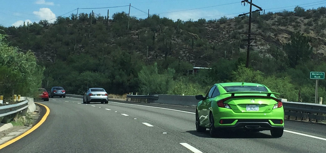 Just when I thought the Aztec Green on my Integra was an obnoxious color, my friend James had to get ahold of a 2017 Honda Civic Si in Energy Green and totally upstage me. Talk about eye-popping.