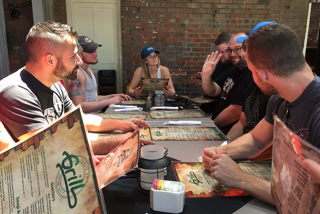 The tougher challenge was finding a restaurant able to accommodate a dozen people without any reservations. Gurley Street Grill, just a block away from us, saved the day and set us up in a comfortable spot on the back patio. To the foodies of the blog audience, you’ll be pleased to know that I took a picture of my turkey croissant and side of cottage cheese.