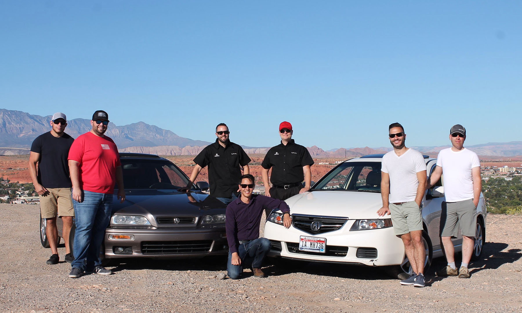 Check this out.  You are looking at 7 friends on a hill overlooking St. George, Utah.  And those two cars – at the precise moment this photo was taken – had a combined 1,111,111 miles on their odometers.  It was a special day on Saturday, October 7th when my friend Josh and I coordinated this meet-up with much anticipation.