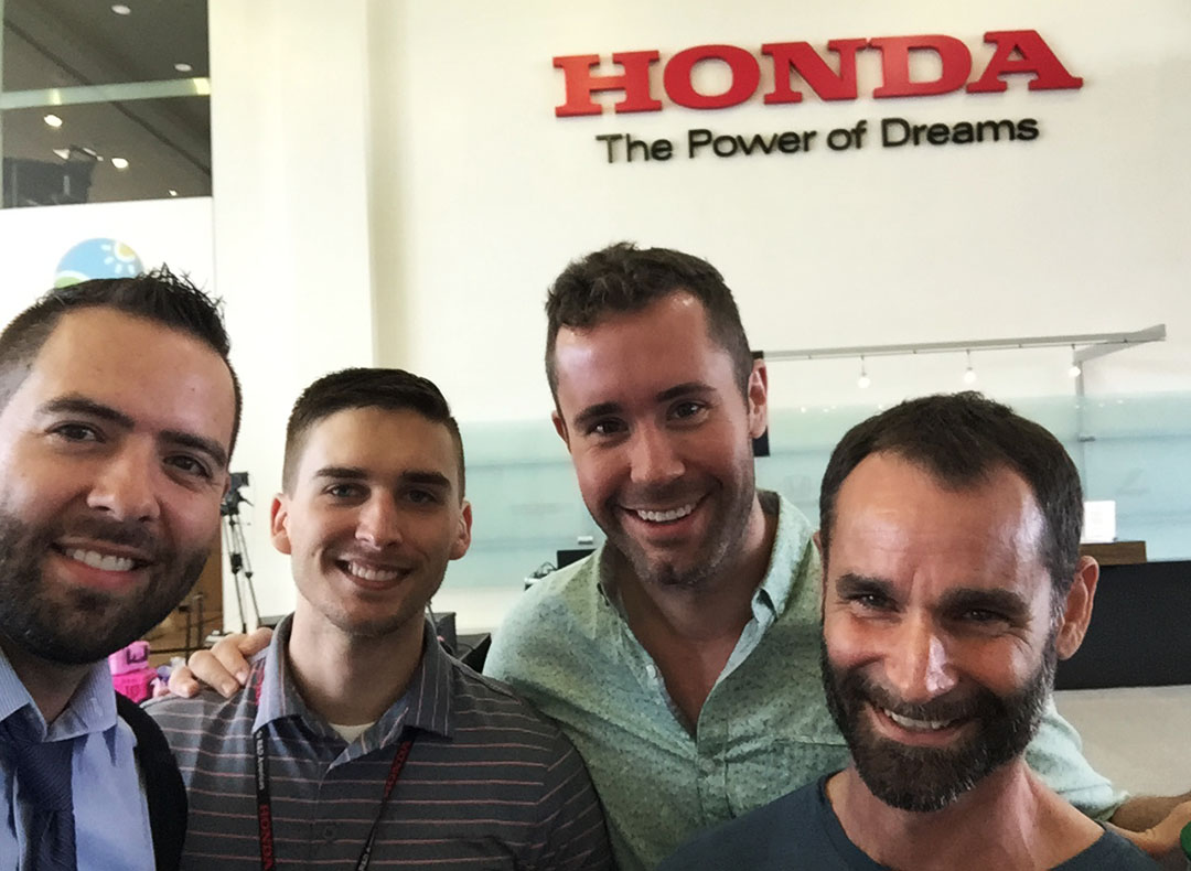 Friends Logan, Davis, and Vince who work at Honda HQ