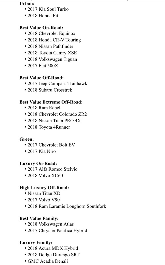 Test Drive Friday: 2017 “Active Lifestyle Vehicle” (ALV) of the Year Competition