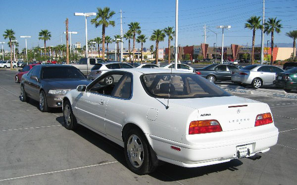 On June 7, 2004, this very Legend was 10 years old and had only 6,533 miles on the odometer.  The story, as I knew it, was that the car was held for that decade as property of Honda – stashed away in a warehouse somewhere in Torrance until finally brought to light.  How the Acura dealership on Sahara Avenue in Las Vegas got ahold of it is a mystery to me, but my friend Louie who was – and still is – in Sales at that facility was happy to pull it out of the showroom for my friend Jeff and me to slobber over in the daylight.