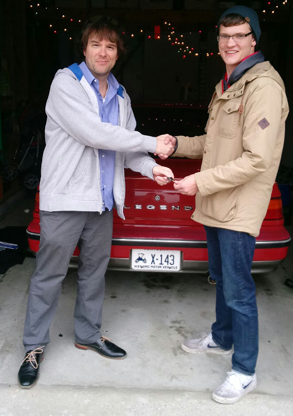 And finally, we have to congratulate my friend Eric in KY who found a good home for his red 1989 coupe a couple of days ago. He’s pictured here at left handing off the keys.  Congrats on the sale, Eric!  So many deals to be had.