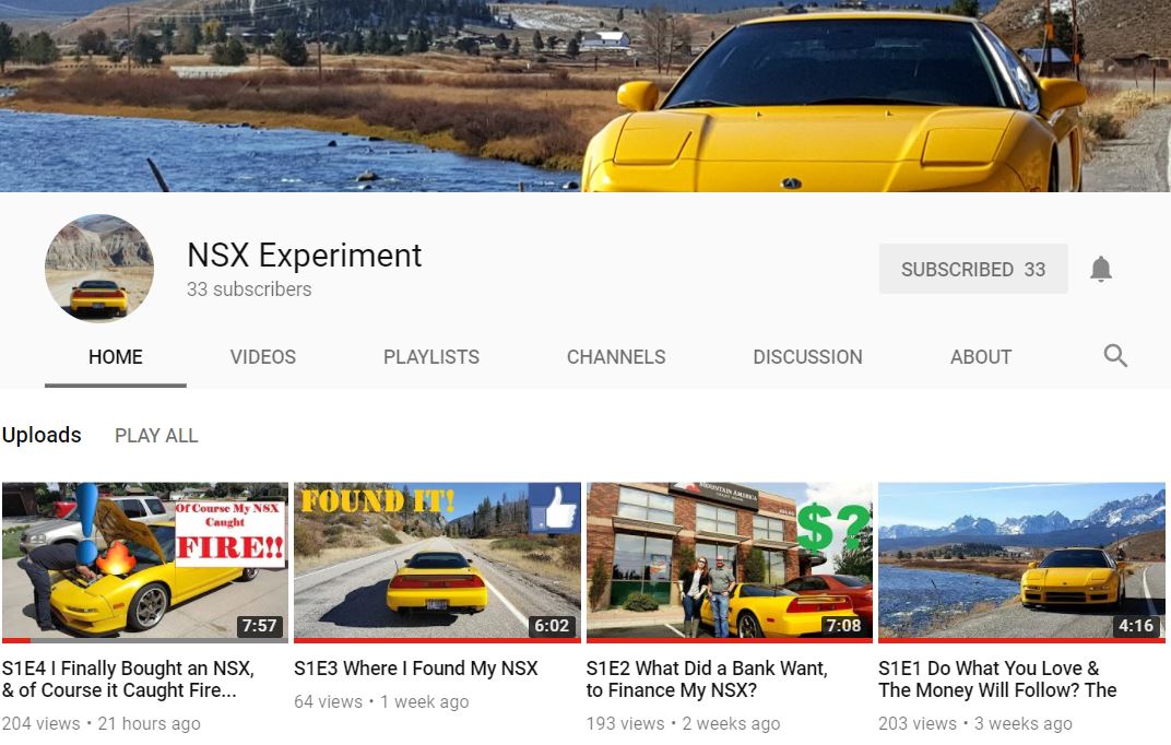 Looking for some midday entertainment to keep your mind off those meetings at the office?  My buddy Josh who you know from TSX Travels has launched a new channel about his latest toy.  The channel is called NSX Experiment.