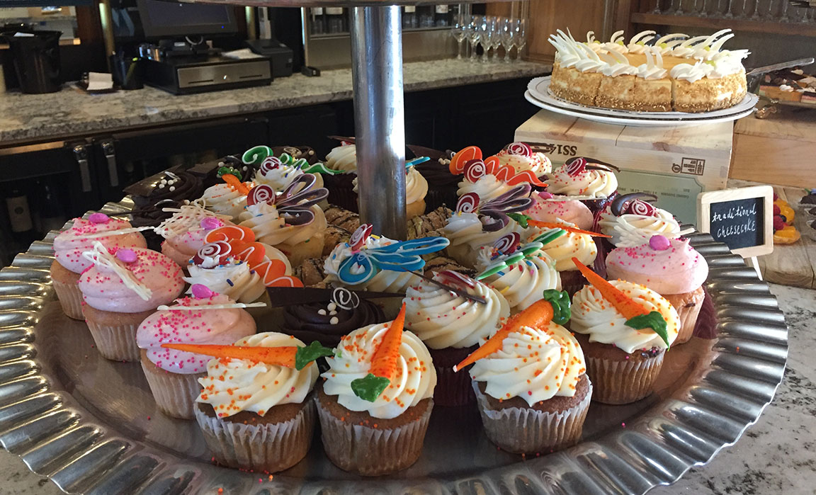 Hearty buffet provisions were available in 3 separate rooms:  The first, with fruits, bagels, and salad items for lighter fare.  The second had the main brunch courses:  beef, prime rib, shrimp, lobster, potatoes, and an omelet station.  And the last was up a few stairs in what appeared to be a library, stocked with all sorts of cupcakes and other sugary goodness.  Each time one of us would get up from our seat to make another pass at the buffet, the servers would come around while we were gone and roll up our napkins again.  There was a lot of fine attention to detail.