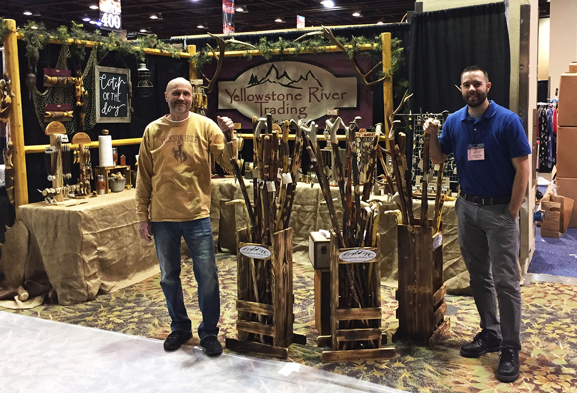 The revolving door at Hotel Hugie hasn’t had a break yet — the month of January I ran at nearly 100% occupancy and loved it.  Last week, Dad & Tanya drove 1,421 miles in fewer than 48 hours from Seattle to Phoenix for a trade show called Oasis.  Each January, it draws more than 3,000 buyers to the Phoenix convention center to see and order knick-knacks and souvenirs for their gift shops and visitor centers.  Dad and Tanya hand-craft wooden items like antler-adorned walking sticks, keychains, magnets, and money clips for their company, Yellowstone River Trading.