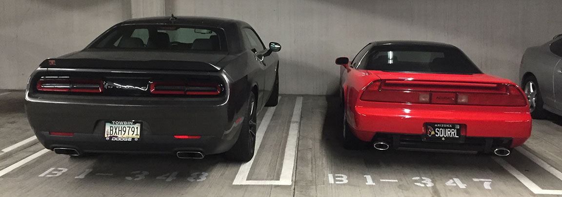 For reals:  Look at the size comparo between a Dodge Challenger and a G1 NSX.