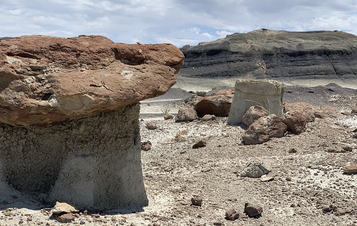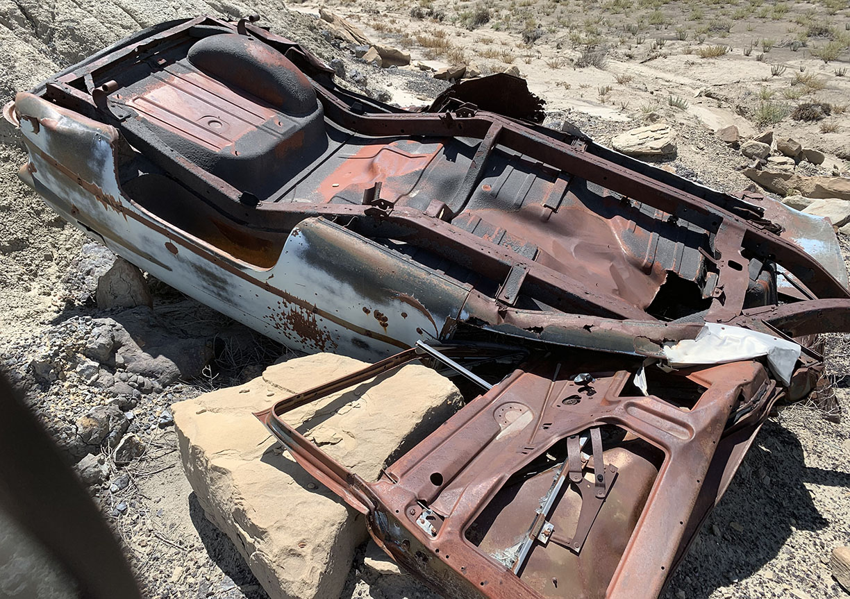 Our trip wasn’t complete without a bit of road-tripping adventure, so Jason introduced us to the “Bisti / De-Na-Zin” Wilderness as we made our respective journeys southbound.  The Wilderness is about 45,000 acres of badlands that are remote in nature, free to access, and unforgiving in lack of services or amenities.  We made sure to take bottled waters before trekking into the ash & sandstone formations too far.  We came across the wreckage of a 1950s car.  Maybe one of my readers will be able to identify it.