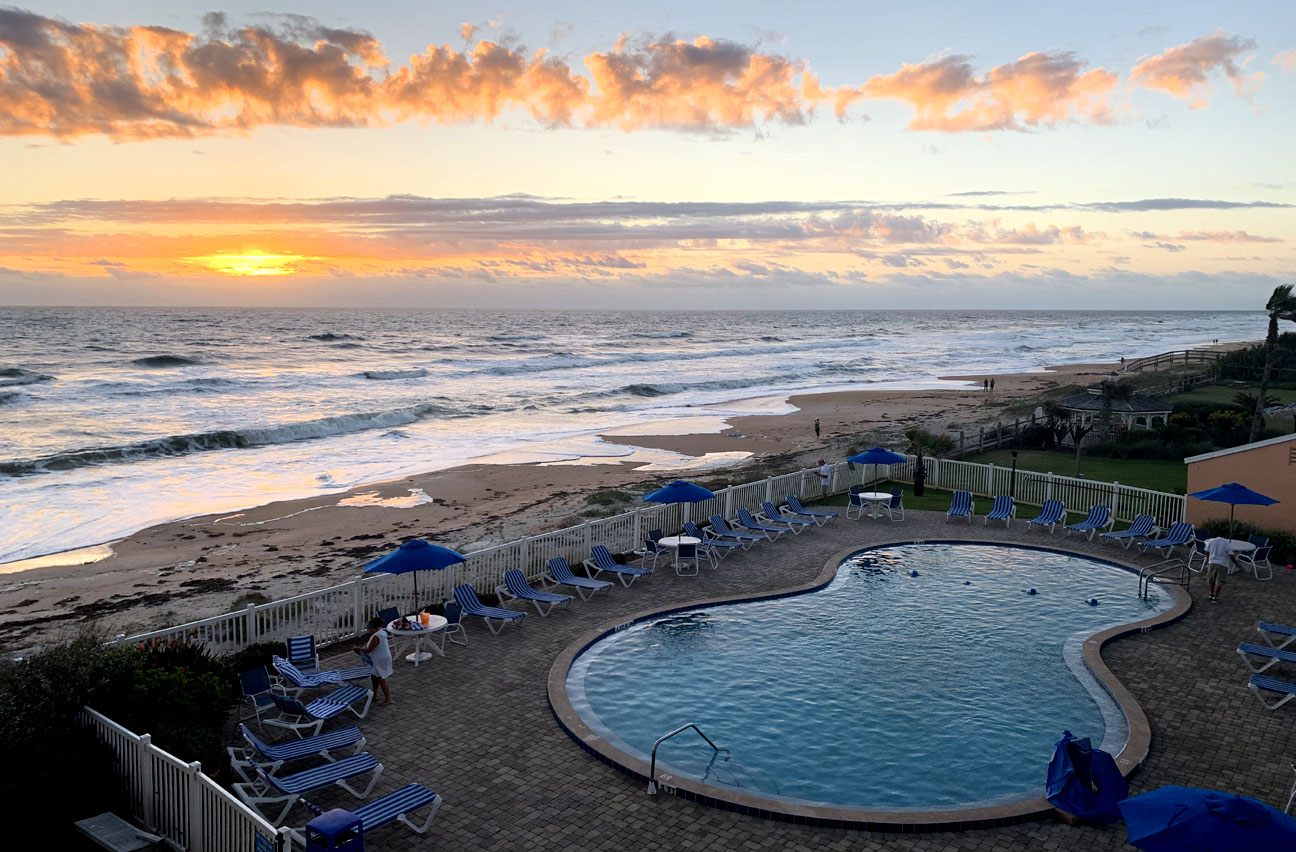 Sunrise view from host hotel, Coral Sands Inn, in Ormond Beach