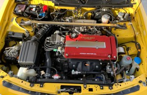 On Sunday, my friend Vlad brought his 2000 model year Phoenix Yellow Integra Type R over to the house. It only has 31,000 miles on it, and the engine bay looks absolutely brand new.