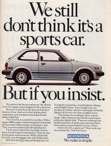 Anonymity – This is on the bad list, just like it’s on the good list. Since I was driving a Civic, I started noticing Civics, and, they’re everywhere. I guess that goes back to the fact that Honda is selling over 30,000 of them every single month. I like to stand out a little more.