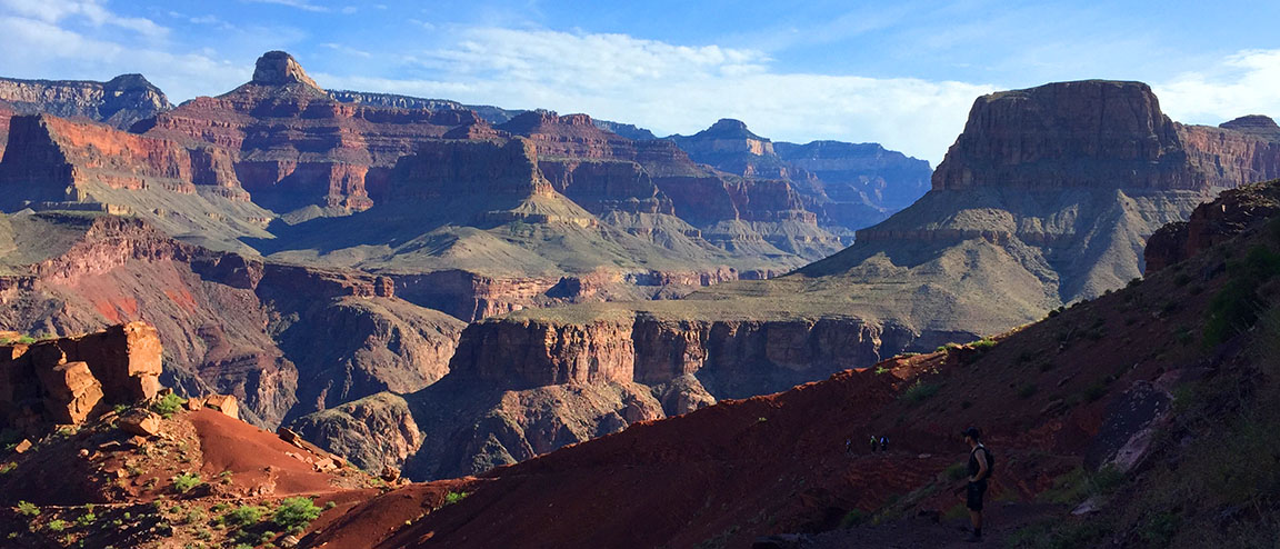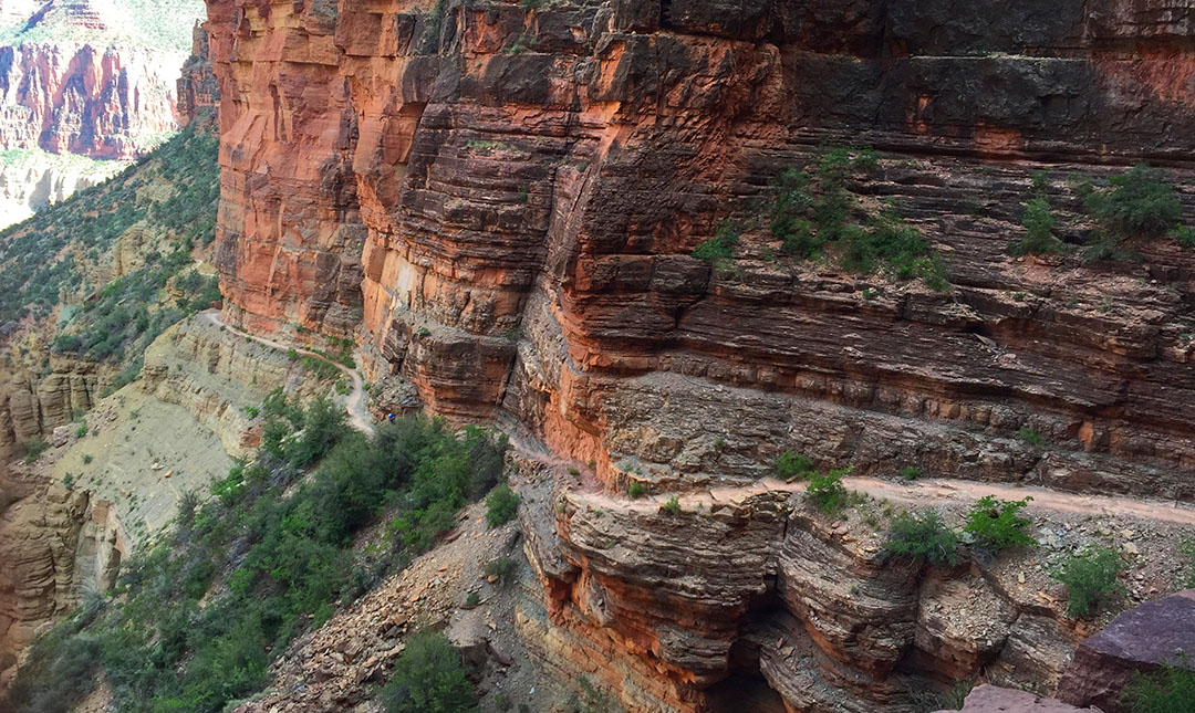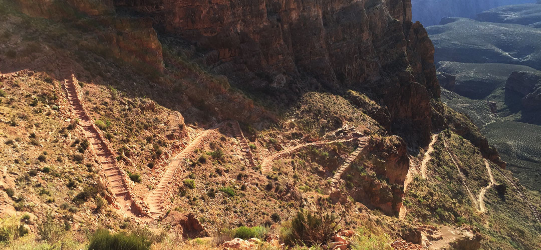 I last blogged about the Grand Canyon in April 2014 when my friend Brad and I road-tripped to the Skywalk, a glass platform suspended from the canyon walls at the West Rim on the Hualapai Indian Reservation. But the 1,900-squre-mile national park is vastly different to look at from any of the many different angles, and there are several different hiking paths that lead down into it for those who dare.