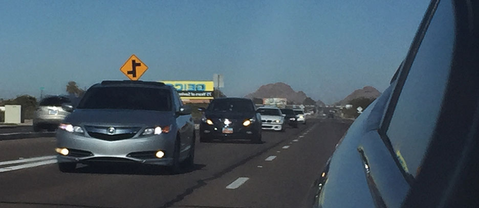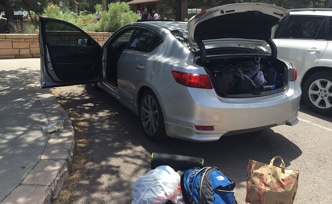 On Saturday morning, Justin, Bryce, Kyle, and I got on a 7:00 shuttle van that drove us 4.5 hours back to where my ILX was parked at the South Rim. Each time we stumbled out of the packed van at a rest area, my legs reminded me that they weren’t happy with what I’d put them through the day prior. It was great to get back to the car and settle in for the rest of the trip home. Here’s a picture from when we exited the park on Saturday morning.