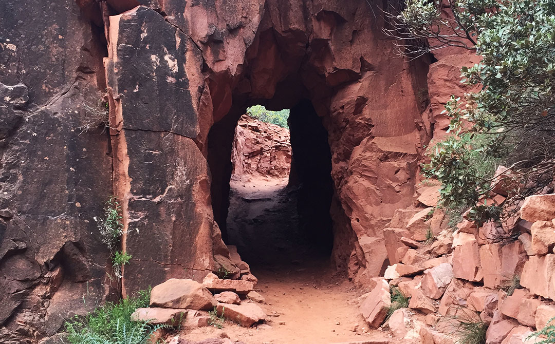 The trail itself seemed to intensify in difficulty as we worked our way up the 800 or so feet in elevation. Though the cave itself was visible from the trailhead, it required scrambling up a few stretches of jagged rocks flanked by prickly cacti – definitely the type of environment where adequate and stable footing is a necessity. I took a spill just once and scraped up my right hand thanks to loose gravel.