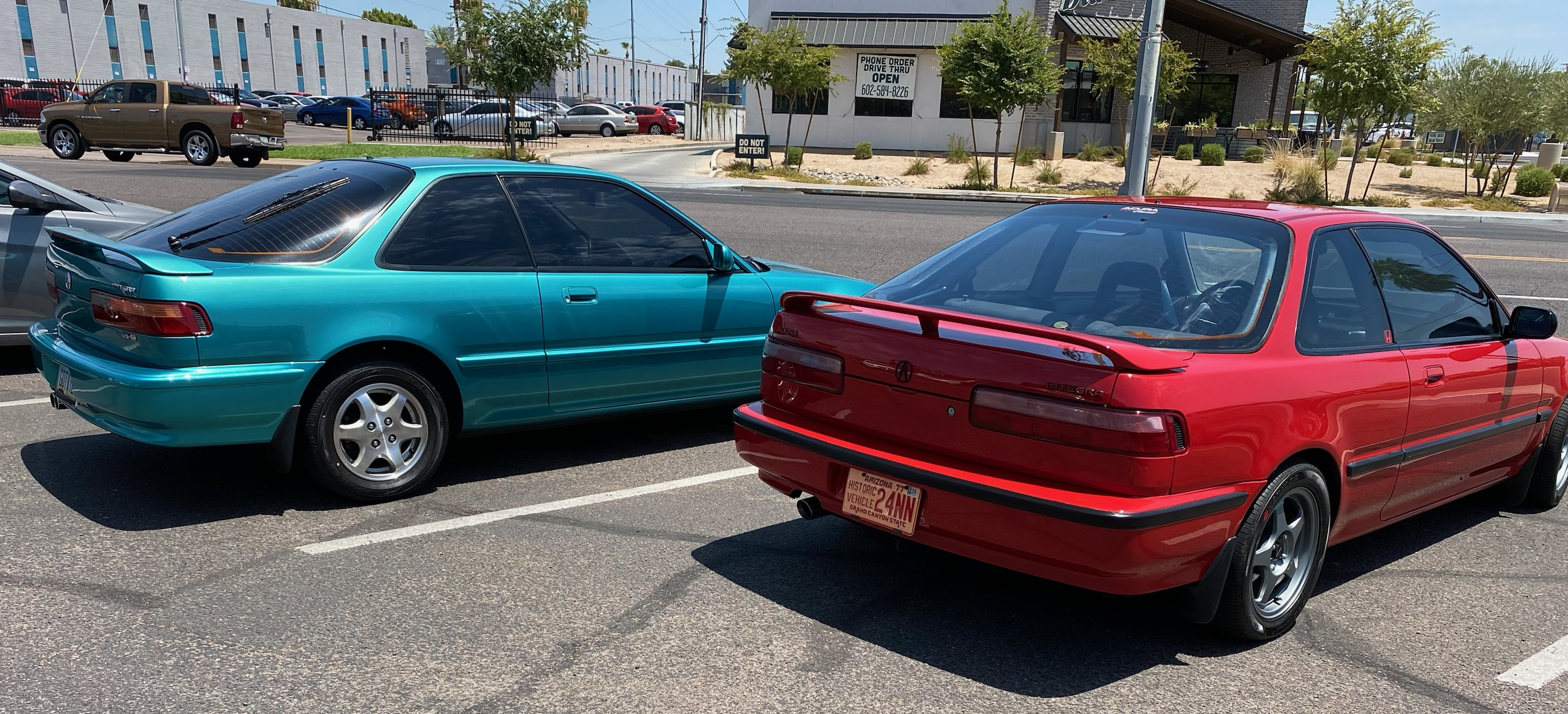 Joining for the pictures was my 1999 Integra which recently had some work done. After about two and a half weeks at Hon-Man in Tempe, it was ready to retrieve once again. The good news is that the erratic idle miss/stumble has been resolved with just an adjustment of the valves. The bad news is that the inspection revealed some prior collision damage to the left rear corner, and a few other issues to resolve in future service visits. Check out my upcoming YouTube uploads for info on that.