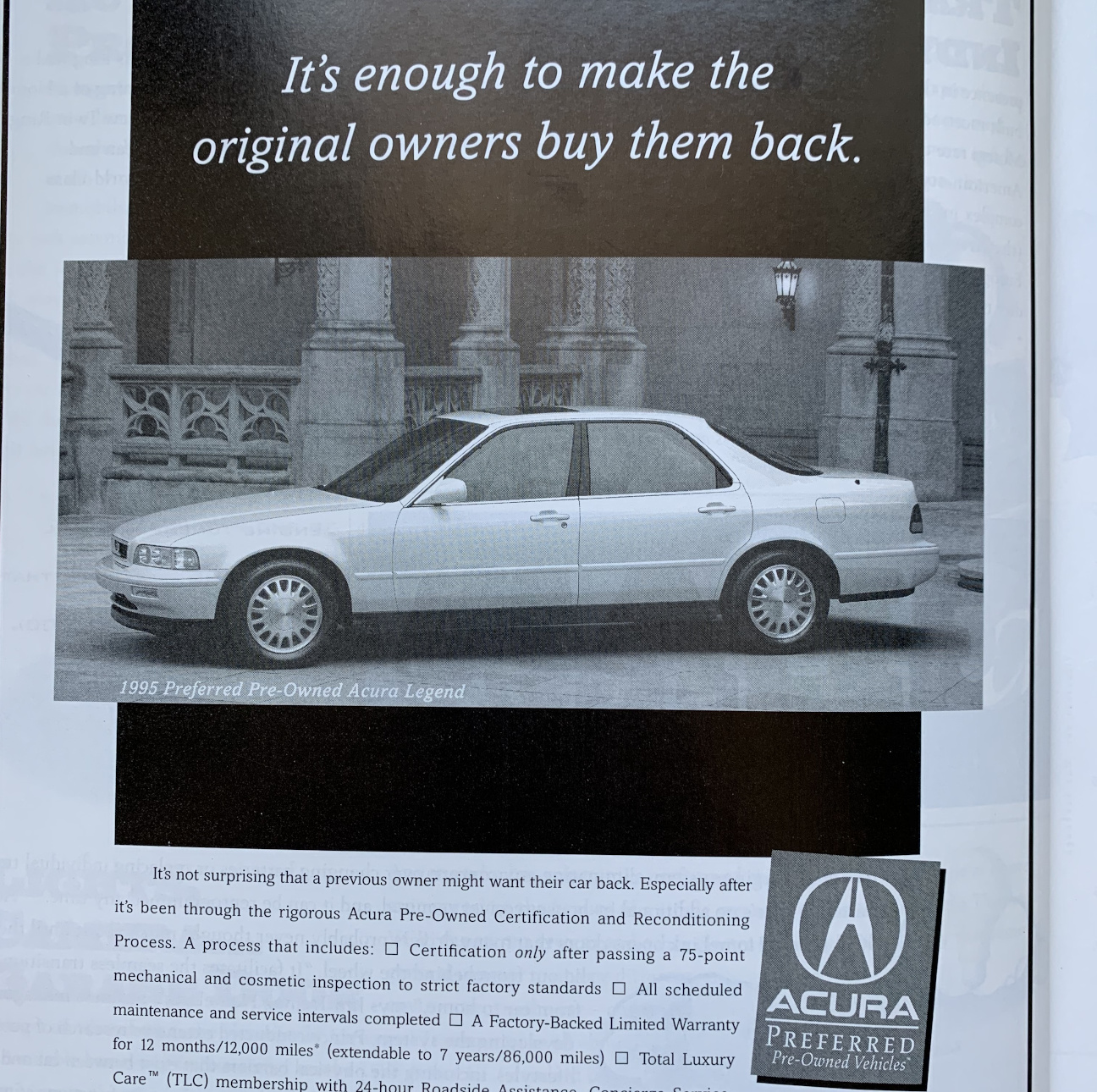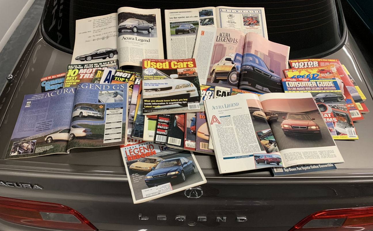 One of the projects I’m keeping myself busy with now is a categorization of about 50 pieces of literature related to the Acura Legend. Over the last 20 years I’ve collected (what I believe to be) every piece of print media that had the Legend in it. I’m in the process now of sorting them all out so I can copy & PDF to share with others.