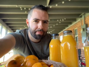I juiced a couple dozen oranges that I got from a friend’s tree. Citrus trees are in season right now here!