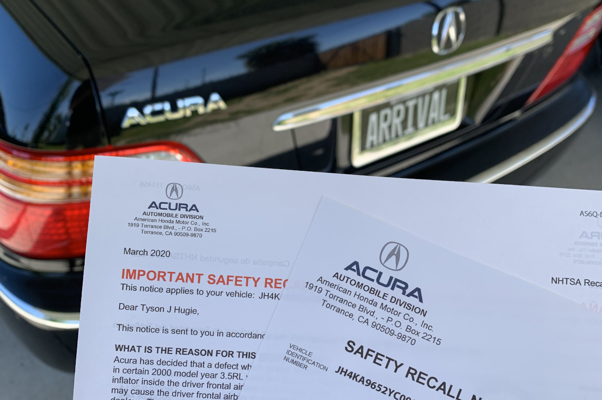 I received a recall in the mail today for the 2000 RL’s airbag. I was sort of surprised Acura is having to recall 20-year-old cars. But the letter basically stated that parts for the repair aren’t even yet available.