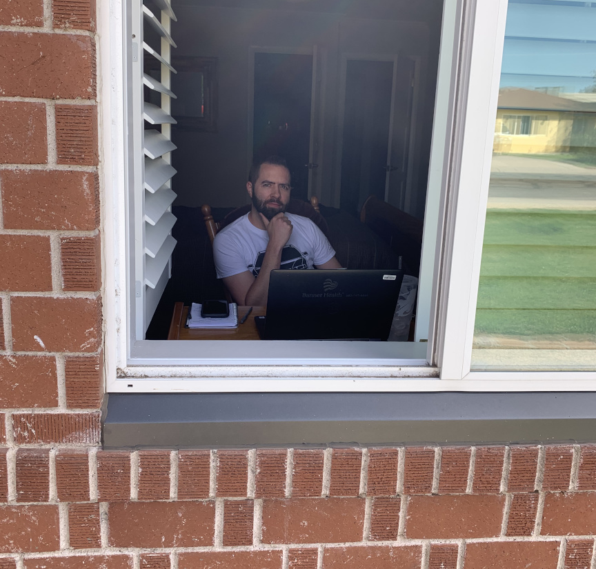A friend rode his bike past the window in my bedroom that looks out to the street out front. I call it my drive-thru window. I moved my desk so that I could look out of it while working from home during quarantine.
