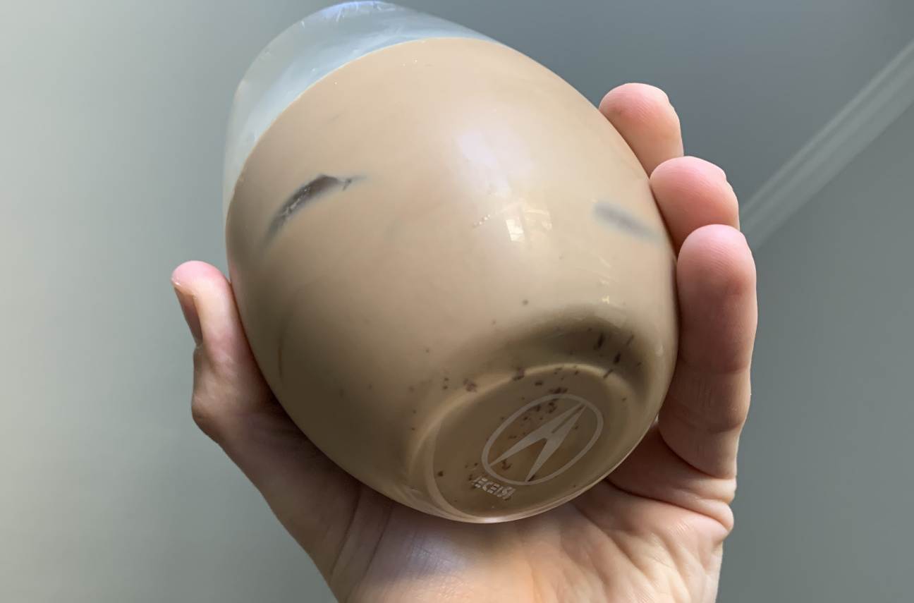 This morning’s work teleconferences started off with an Acura wine glass of iced coffee.