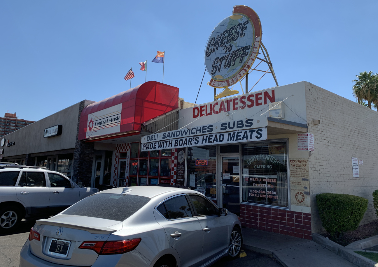 Another place I checked out was right by my house. For years I’ve driven past this little deli called “CHEESE N’ STUFF” at the intersection of Central Avenue & Camelback Road in Phoenix. With a name like that, I couldn’t say no. The interior is totally frozen in time – almost as if the clock stopped in about 1975. Decor consists of wood paneling, family photos (the place is family-run, after all), and a general store-style shelf setup. Some of the signs on the wall looked like they had been printed in Print Shop in 1987, adding to the nostalgia.