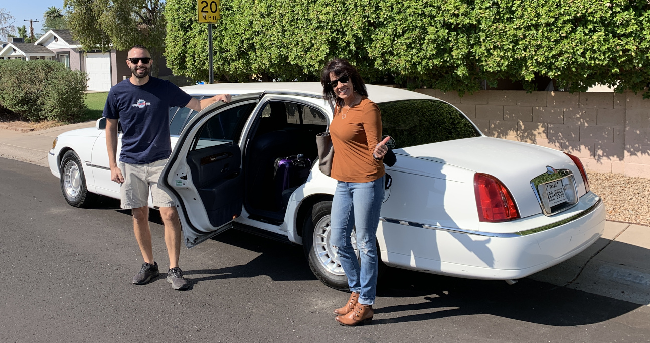 My mom had a long layover on Sunday and we had enough time for a late lunch, so I borrowed my friend Devan’s six-door, three-row 2000 Lincoln Town Car funeral limo to pick her up. What a floaty awesome boat.