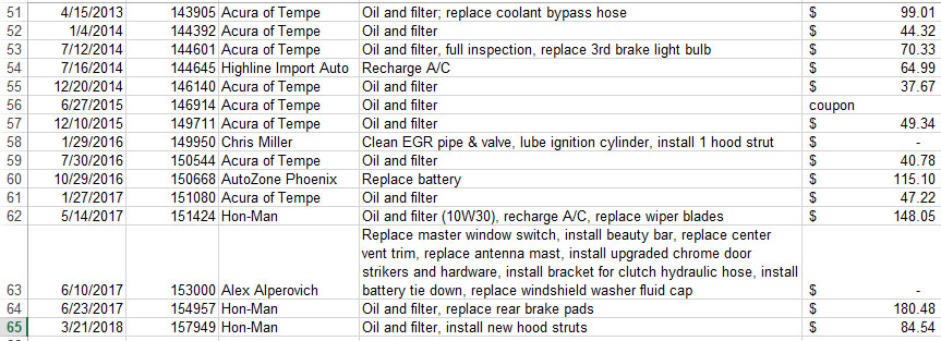Here’s how the timing worked out and where I got each of my six now-classic Acuras from: