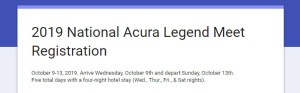 The time has come! The National Acura Legend Meet, otherwise known as NALM, is accepting participant registration for its 15th annual event. Launched in 2005 in Dallas, Texas, NALM has been held in 14 cities around the country and this October will have its first event in Florida. Here is a blog what shows photos and videos from each year / location.