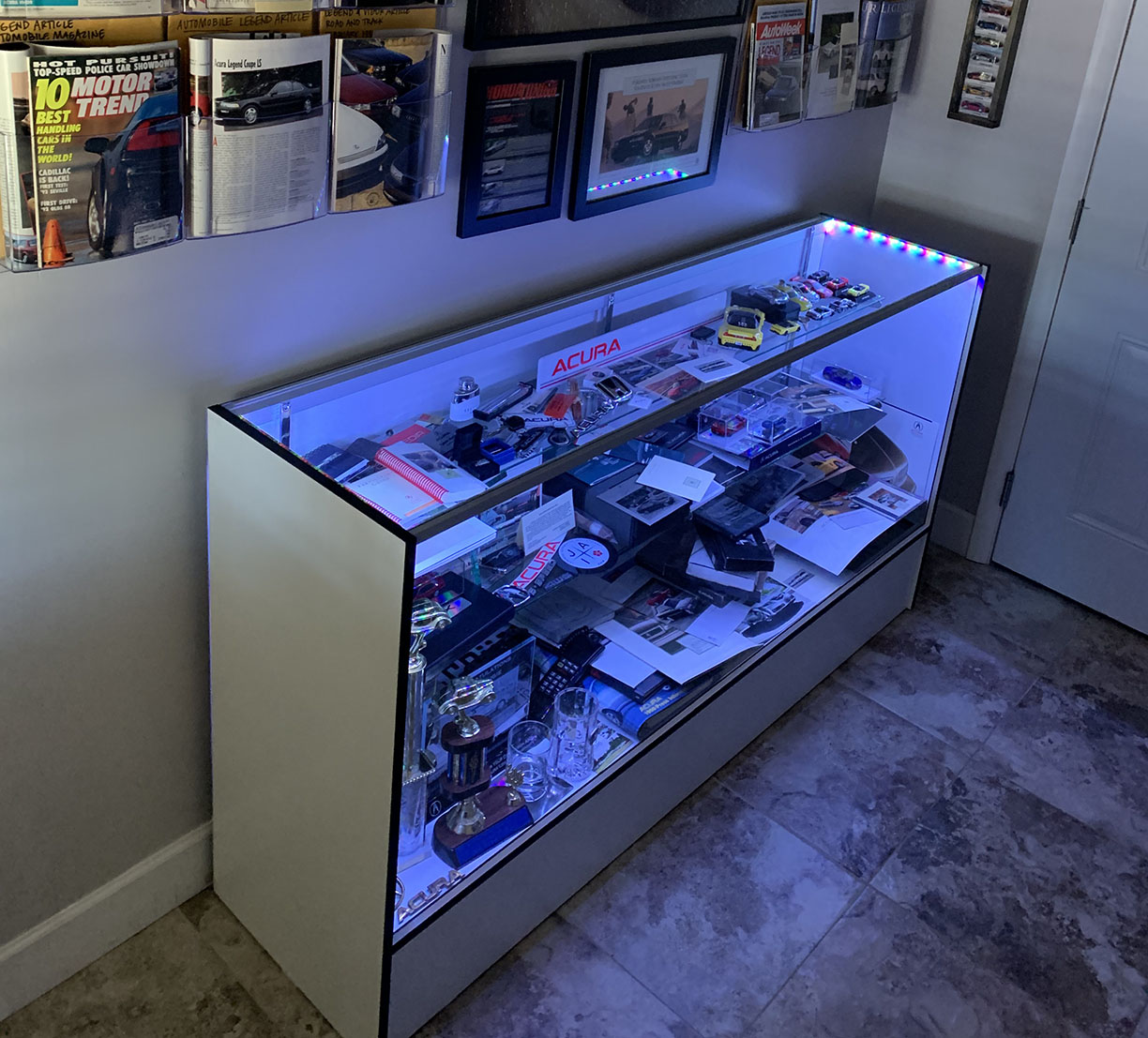 Also, I am continuing to make enhancements to the house / showroom. I recently added $14 worth of LED strip lighting to the glass showcase. Fun little upgrade!